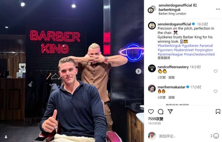 8月5日讯 著明网红发型师Senol Erdogan在社媒中晒出了与枪手先锋约克雷斯的合影,后者在新赛季驱动前理了新发型。