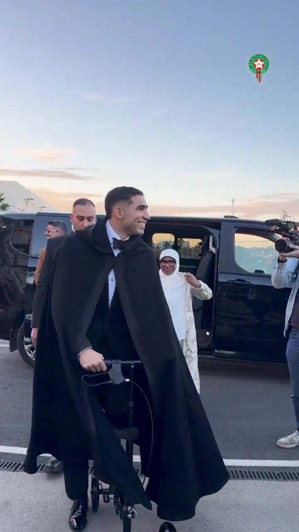 脚踝受伤,阿什拉夫骑特制滑板车出席非洲足球聚集会受奖庆典