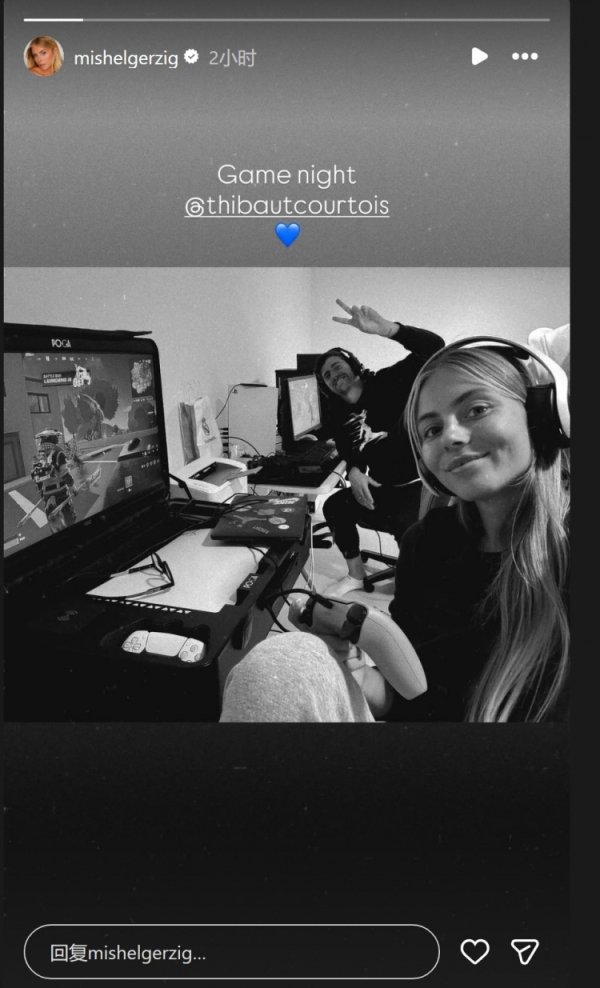 11月21日讯 库尔图瓦的细君米歇尔·格兹格更新社媒动态,晒出与库尔图瓦打游戏的相片。 米歇尔·格兹格社媒晒照,她与库尔图瓦在家中联机打游戏,配文:“游戏之夜。” 库尔图瓦与米歇尔·格兹格2021年认真公开恋情,2023年举办婚典,两东谈主现在育有一个男儿。......查看更多
