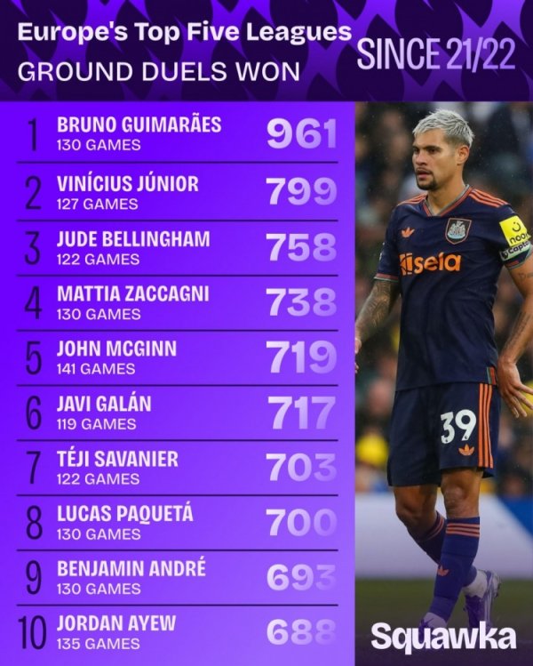 9月11日讯 Squawka统计了2021-2022赛季以来球员在五大联赛大地抗争得手的次数,并排出榜单,吉马良斯961次居首,维尼修斯、贝林厄姆二三位。 21-22赛季以来五大联赛大地抗争得手排行: 吉马良斯(130场)——961 维尼修斯(127场)——799 贝林厄姆(122场)——758 扎卡尼(130场)——738 麦金(141场)——719 加兰(119场)——717 萨瓦尼耶(122场)——703 帕奎塔(130场)——700 本杰明-安德烈(130场)——69......查看更多