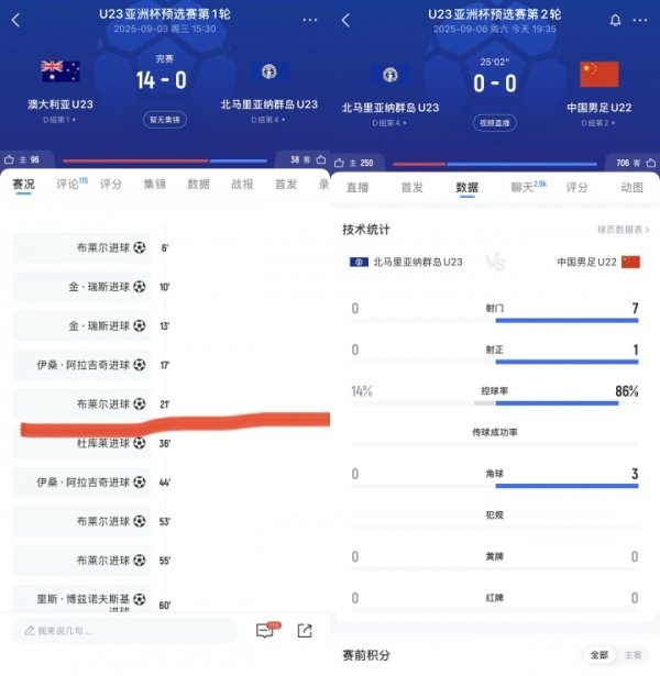 09月06日讯 北京时辰19点35分,U23亚洲杯预选赛第二轮,中国vs北马里亚纳群岛在西安海外足球中心进行,比赛进行到上半场比赛第25分钟,中国队现在7脚射门1脚射正莫得进球,而此前澳大利亚U23在对阵北马里亚纳群岛U23的比赛中,当比赛进行到上半场第25分钟时,澳大利亚还是5-0向上! 德转处分员朱艺此前直言:北马确实是太弱了,不错说基本等于个“体育精通者”构成的业余球队! 北马里亚纳群岛东谈主口47329(2020年东谈主口数据),由14个岛屿构成,总面积475泛泛公里......查看更多