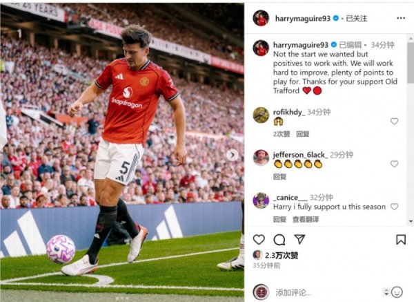 马奎尔社媒谈首轮失利:这不是咱们念念要的开局,将勉力矫正