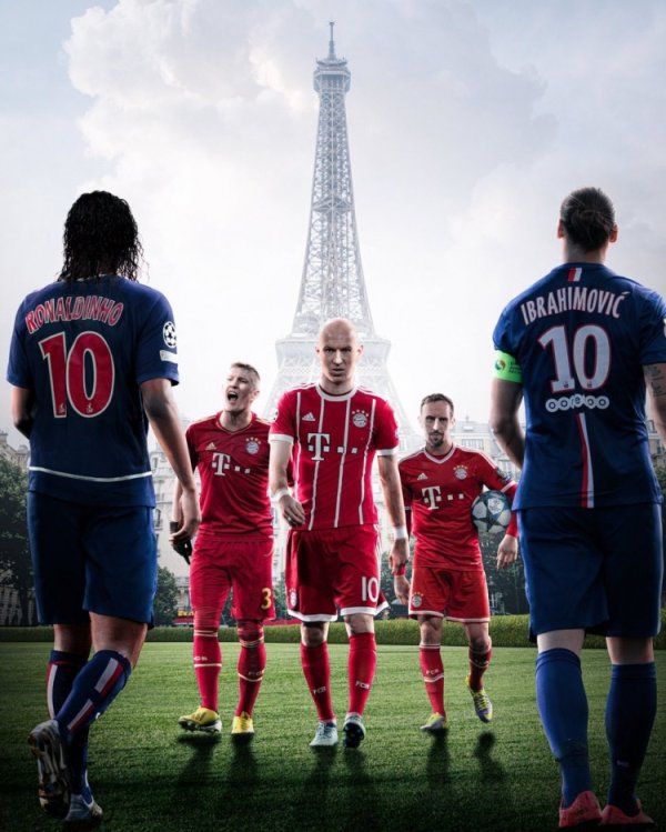 拜仁发布海报预热欧冠vs巴黎:罗贝里、小猪出镜,伊布、小罗在列