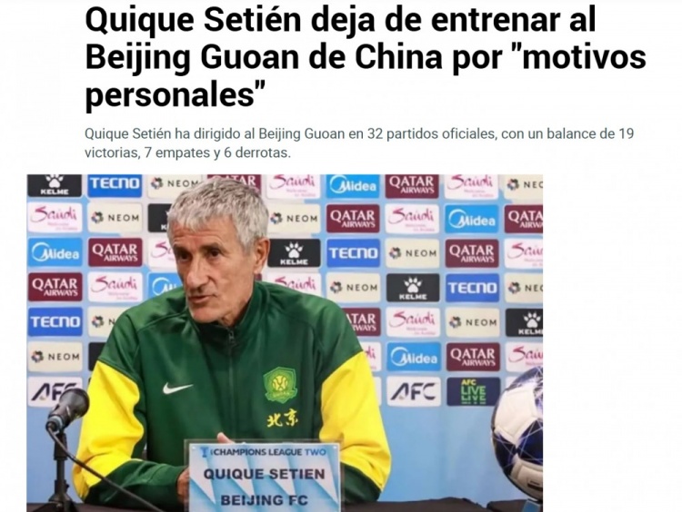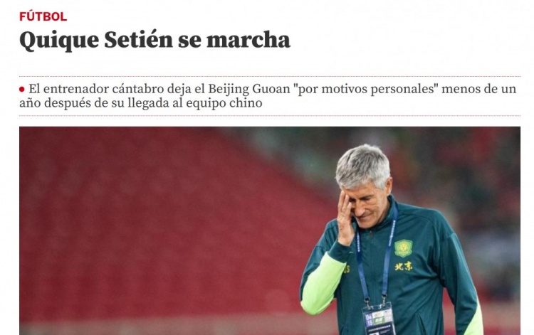 10月6日讯 日前,西班牙媒体《马卡报》、《天下体育报》报说念了北京国安主帅塞蒂恩因“个东说念主及家庭原因”离职的音信。