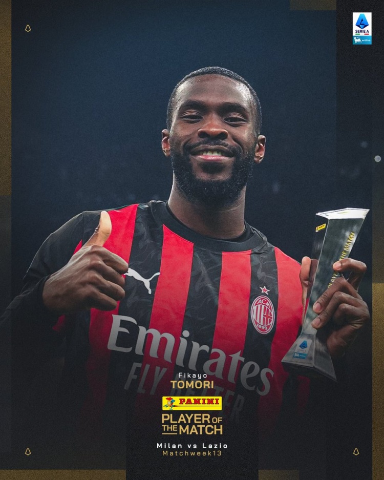 11月30日讯 官方音书,托莫里当选米兰1-0拉都奥的全场最好球员。