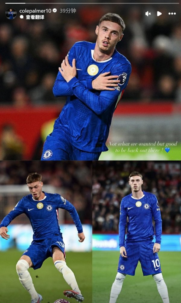 复出即破门,帕尔默社媒晒照:遵守未能遂愿,但回来的嗅觉真好