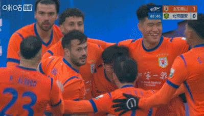 03月14日讯 中超第2轮,山东泰山vs北京国安,赛事 第49分钟,克雷桑分球,助功 谢文能小角度爆射破门,泰山1-0领跑 国安。