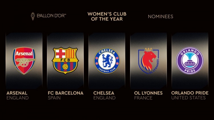 最佳女足俱乐部候选:阿森纳、巴萨、切尔西、里昂、奥兰多荣耀