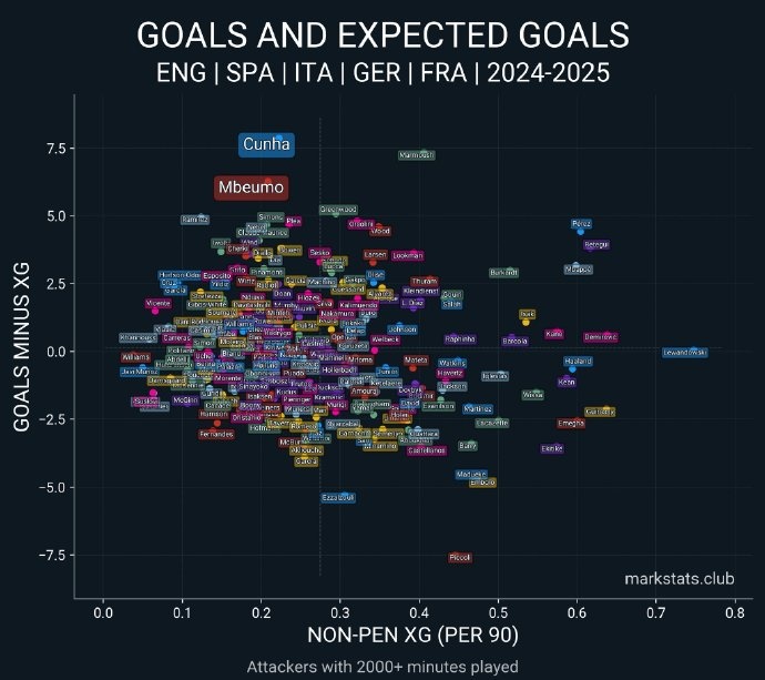 姆贝莫和库尼亚都是上赛季欧洲赛场机会转化能力最强的球员之一,这在一定程度上弥补了塞斯科得分能力不足的缺陷,阿莫林拥有一个风格互补的前场三叉戟。