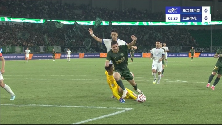 08月16日讯 中超第21轮,浙江vs上海申花,比赛第63分钟,浙江球员亚戈-卡列洛禁区倒地,裁判果断出示黄牌示意球员假摔。