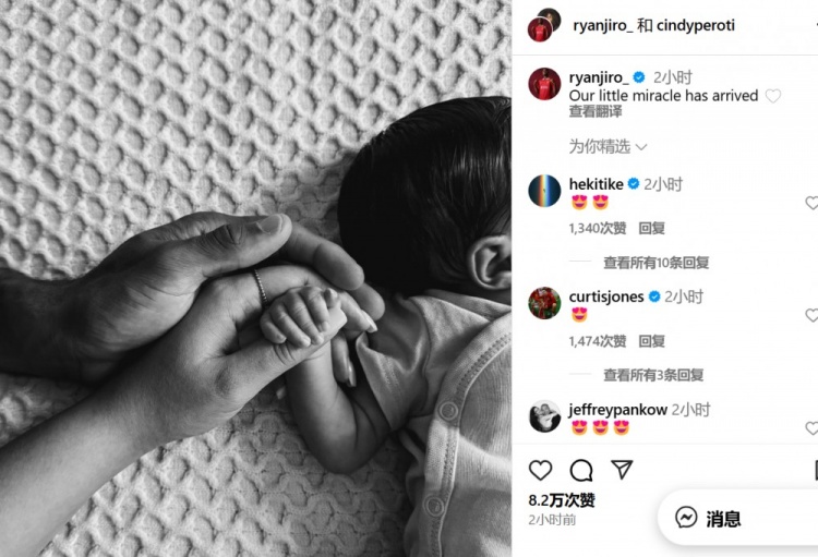 赫拉芬贝赫晒新生儿照片:我们的小奇迹来了