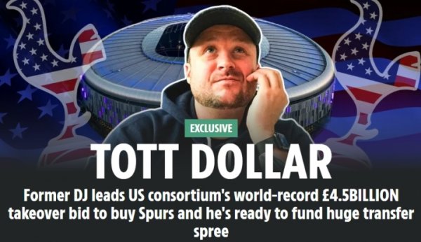 09月26日讯 太阳报独家报道,一家美国财团计划以创世界纪录的45亿英镑总报价买托特纳姆热刺。 太阳报表示由科技企业家布鲁克林-厄里克组建的一个12人团队提出了这一惊人的报价。厄里克和他的合作伙伴出价33亿镑想买下热刺,并准备再拨出12亿英镑作为球员预算,包括工资、转会费和经纪人费用,供热刺主教练弗兰克在明年一月转会窗开启后使用。这一总报价超过2022年由伯利财团以42.5亿镑收购切尔西。 41岁的厄里克财团包括NFL和NBA投资者在内,他的“热刺3.0”蓝图设想包括对球队的......查看更多
