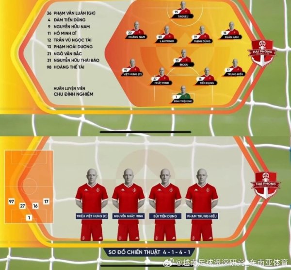 08月17日讯 据博主@越南足球资深研究_东南亚体育的分享,越南V1联赛在新赛季启用了全新记分牌和展示系统,但是赛前却没能拍好各支球队的球员动态照片。 结果联赛首轮南定2-1战胜FC海防的赛前出场动画就成了这样... 不知道的还以为你们是11兄弟... 而V1联赛想象中的自己大概是这样.........查看更多
