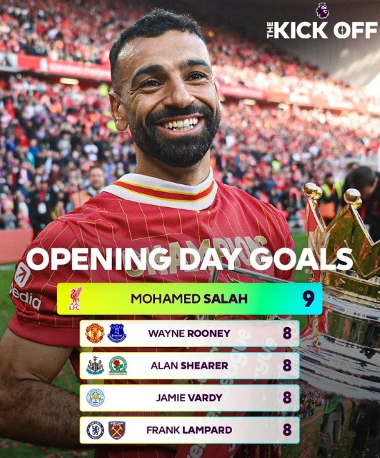 新赛季延续?萨拉赫揭幕战已打进9球,英超历史最多