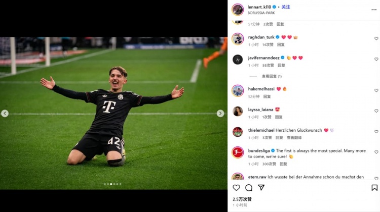 德甲官方账号也现身驳倒区饱读吹谈:“处子球老是很绝顶!降服你将来还能进更多球。”