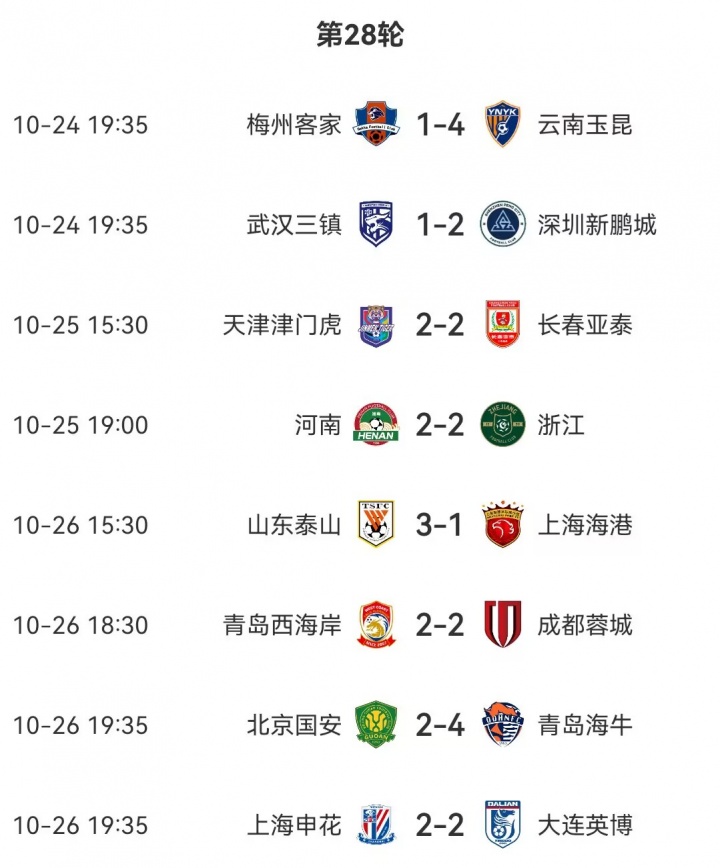 > 绝对尖锐化!中超还剩2轮,正数3名、倒数3名之间均1分之差