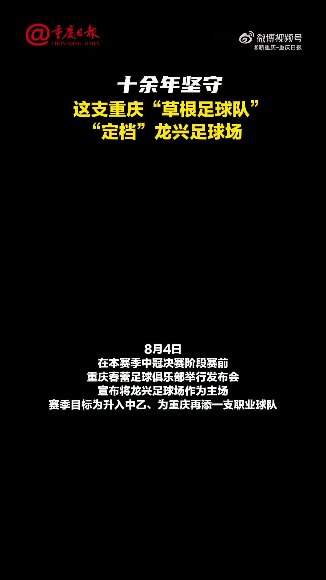 8月4日,在本赛季中冠决赛阶段赛前,重庆春蕾足球俱乐部举行发布会秘书将龙兴足球场动作主场,赛季见识为升入中乙、为重庆再添一支干事球队。