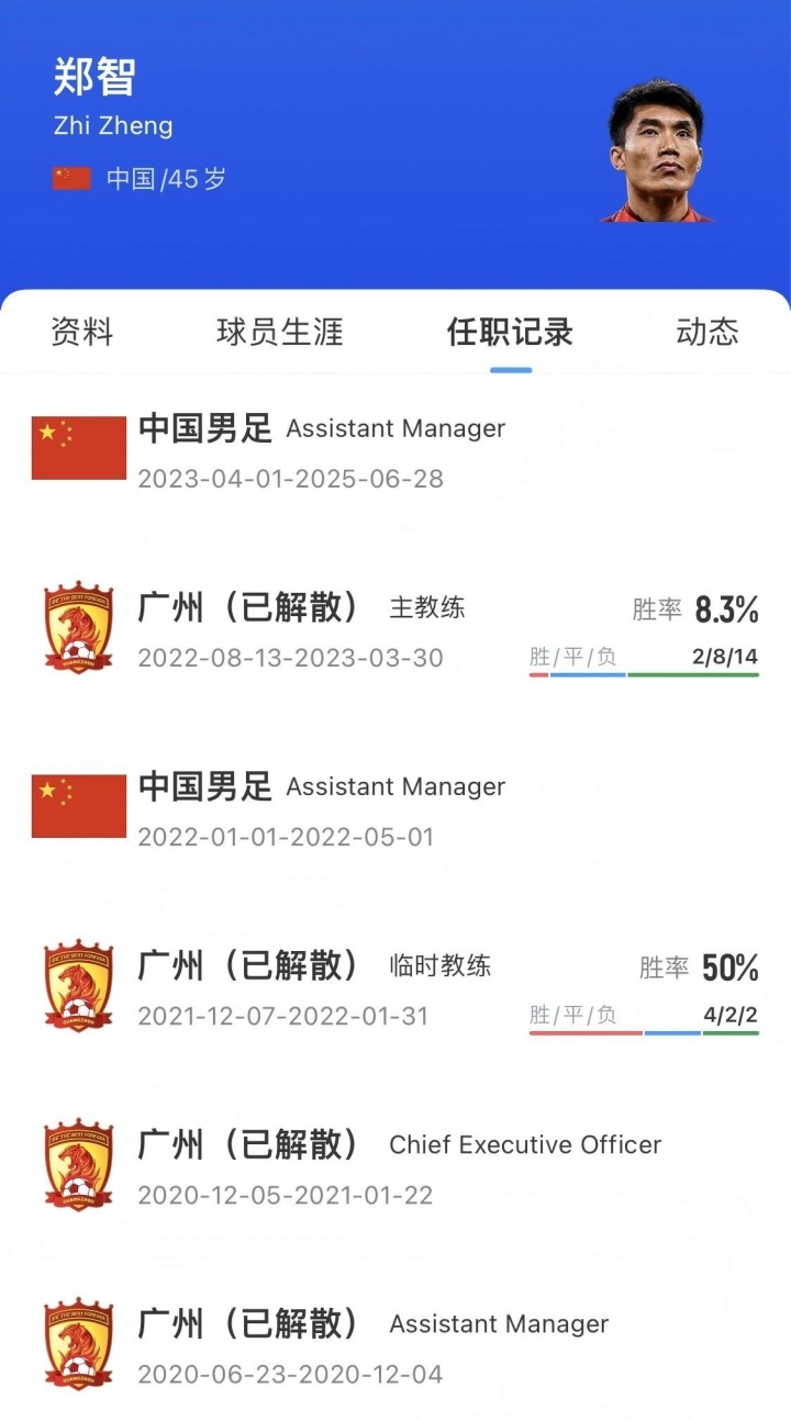 2021年12月7日,郑智出任广州队扩充主锻真金不怕火兼球员。2022年1月,41岁的郑智出战广州队vs长春亚泰的中超比赛,这是他行状生存临了一次出场。2022年8月,郑智出任广州队主锻真金不怕火。 2023年2月27日,郑智出任国足助教 。跟着伊万离任,郑智也退放洋足助教团队。