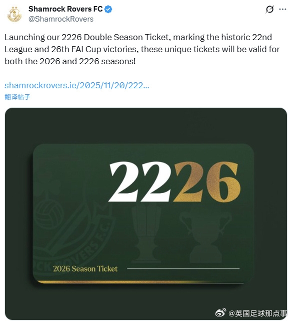 😅爱尔兰权门沙姆洛克流浪者推出了200年后的季票……