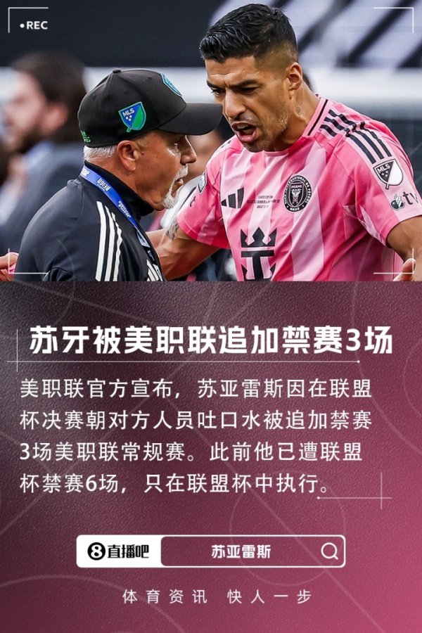 再遭禁赛!官方:苏亚雷斯吐涎水被好意思职联追加3场老例赛禁赛