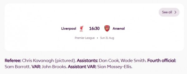 08月31日讯 英超官方晓谕,今天利物浦vs阿森纳的裁判组调理,原VAR裁判萨里斯布里被更换为约翰-布鲁克斯。 据多位英国记者显现,昨日切尔西2-0打败富勒姆的比赛中,萨里斯布里诞妄侵扰富勒姆18岁小将金进球判罚,被里面措置停哨。 据悉萨里斯布里对判罚侵扰不适合PGMOL(事业比赛裁判有限公司)对VAR侵扰设定的法子。韦伯昨日已胜利联系富勒姆。 联系争议判罚: 比赛第22分钟,富勒姆单刀契机,18岁小将金扣事后卫推射破门。经VAR领导,主裁到场边回看,最终判定穆尼斯对查洛巴犯......查看更多