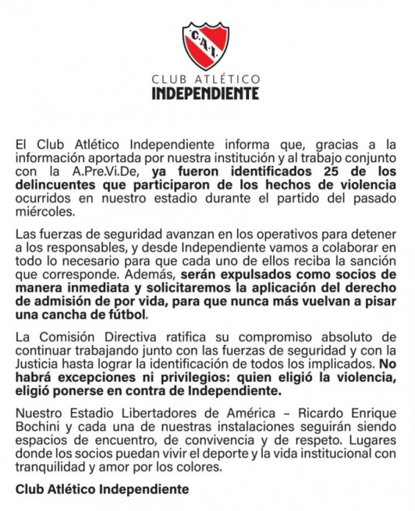 8月26日讯 今天,安靖竞技俱乐部针对在上周南好意思洲杯1/8决赛中发生的球场讲和事件发布公告,明确暗意对参与该事件的主场球迷赐与重办。 在南好意思洲杯1/8决赛中,阿根廷安靖球迷与智利大学球迷发生突破,突破随后升级为恶性讲和事件。这次事件形成了严重的东谈主员与步骤重大。据统计,事件共导致100余东谈主被警方逮捕,19东谈主在突破中受伤,其中两东谈主伤势严重。 安靖竞技俱乐部官方公告: “通过本俱乐部提供的信息以及与A.Pre.Vi.De的共同勉力,咱们也曾证据了25名参与上......查看更多