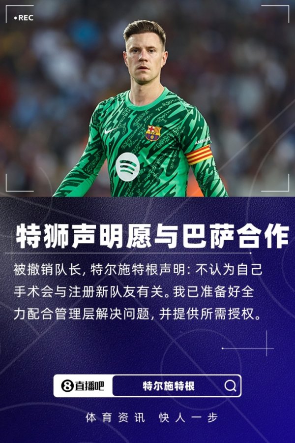 08月09日讯 特尔施特根近日因隔断授权巴萨提交医疗诠释,被俱乐部暂时抢掠队长袖标。球员发表声明,对近期的事情作念出复兴。 巴萨随后也发布公告,证实得回授权,并规复特尔施特根队长身份。 关联新闻:巴萨官方:由于运转标准走访花样,一致答允暂时破除特狮队长职务 撕破脸!世体:特狮隔断授权提交医疗诠释,巴萨准备对其里面贬责 西媒:特尔施特根非凡自称仅缺阵3个月,让巴萨无法为新援注册 特尔施特根声明: 昔时几个月,无论是身体上如故个东谈主生活上,对我而言都额外繁忙。和统共球员同样,在......查看更多