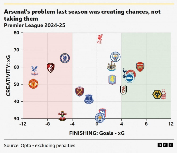 眼尖的球迷发现了:按上头算法阿森纳“少进”了24球,但实质只比赤军少17球。深奥就在射门质料上——斟酌这个身分,阿森纳上赛季斥逐智商其实远超冠军!他们的畅通战进球比预期多7个,利物浦只多了0.5个。