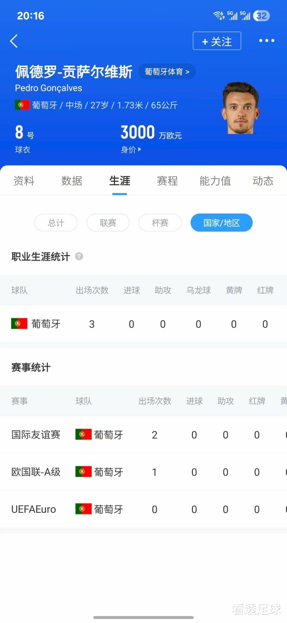 拿下2020/2021赛季葡超金靴的贡萨尔维斯,于今国度队唯独三次出场契机。