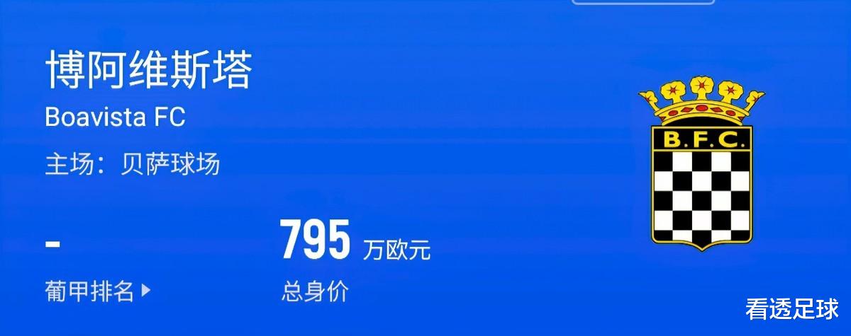 而上赛季刚刚保级到手的阿马多拉队和上头图中走漏的传统葡超钉子户博阿维斯塔的总身价则都是700万欧元傍边,致使无法跟英冠球队对比,跟我国中超联赛的青岛西海岸、大连英博处于吞并水平。