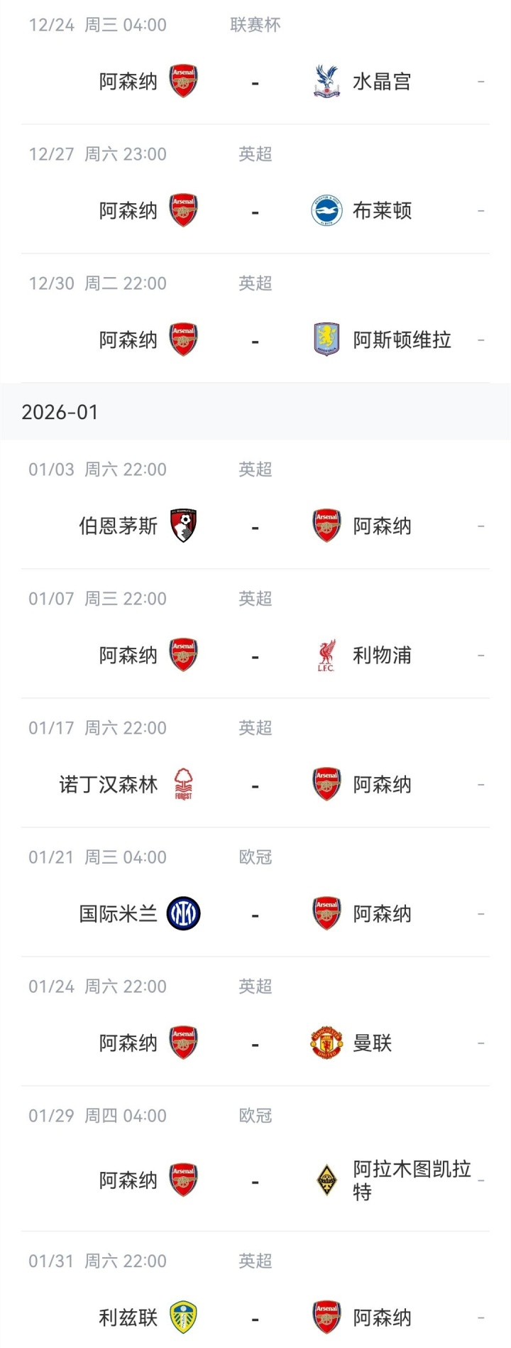 TA指出,昔日8周阿森纳要面对至少14场比赛。