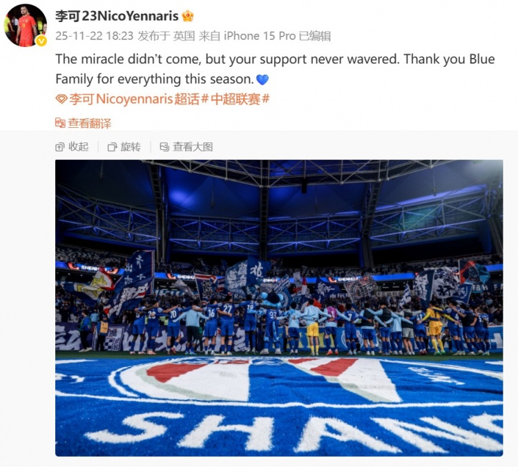 李可社媒:遗迹莫得到来,但申花球迷的撑握从未动摇