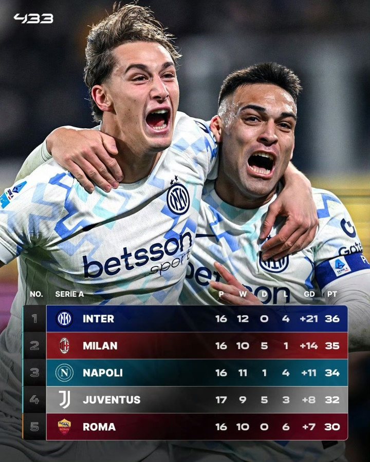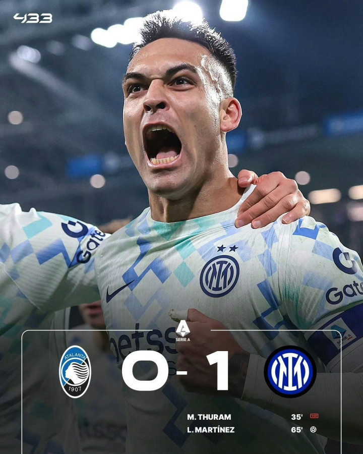 北京时分12月29日03:45,意甲联赛第17轮,亚特兰大镇守主场迎战海外米兰。上半场,劳塔罗失良机,图拉姆进球被吹。易边再战,巴雷拉错失良机,劳塔罗制胜。最终亚特兰大0-1国米。积分榜方面,国米36分以一分上风领跑,亚特兰大22分第九。