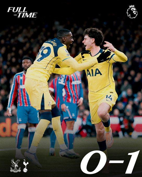 北京时分12月29日00:30,英超联赛第18轮,水晶宫镇守主场迎战托特纳姆热刺。上半场,里沙利松进球被吹,格雷头球破门。下半场,德文尼错失良机,里沙利松破门再度被吹,奥多贝尔命中立柱。最终热刺1-0打败水晶宫。本场比赛事后,热刺积25分,排在第十别称,水晶宫积26分,排在第九名。
