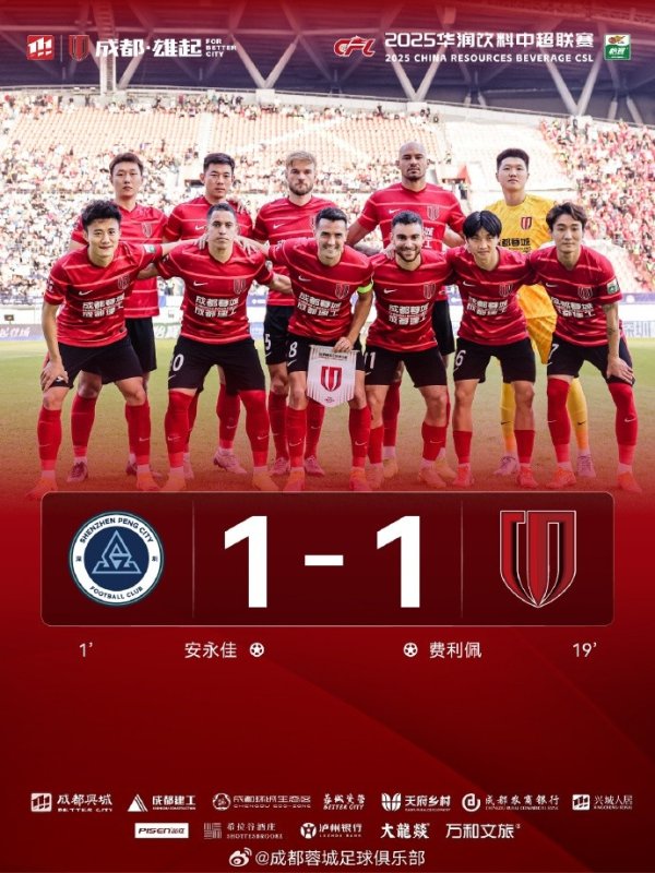 11月22日下昼,2025华润饮料中超联赛第30轮,成皆蓉城客场挑战深圳新鹏城,迎来本赛季联赛收官战!上半场开场不到1分钟对方打入一球。随后,成皆蓉城反客为主,不断在对方门前制造险情。第19分钟,费利佩的强力头槌将比分扳成1-1。下半场易边再战,成皆蓉城仍占据优势,可惜未能将契机疏导为进球。全场补时第3分钟,对方球员在禁区内出现手臂触球,主裁判第一时期判罚点球,但在不雅看视频回放后进行改判,点球被取消。最终,成皆蓉城1-1战平深圳新鹏城。至此,成皆蓉城以17胜9平4负积60分......查看更多