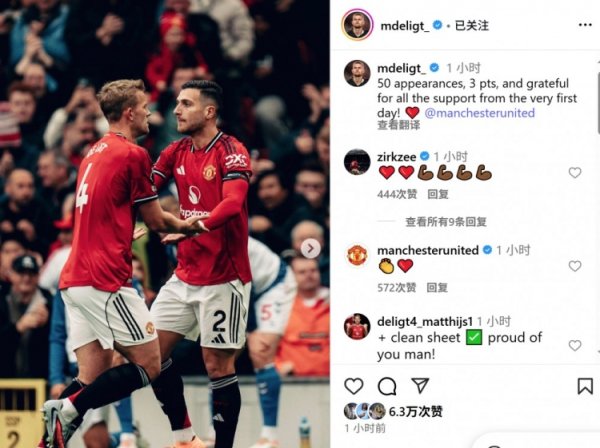 10月5日讯 曼联2-0打败桑德兰。赛后,德里赫特更新社媒庆祝赢球。 德里赫特写说念:50次出场,拿下3分,感谢从第一天起就获取的通盘复旧!❤️......查看更多