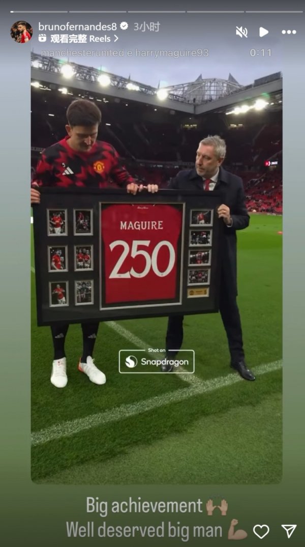 马奎尔领取曼联250场记念球衣,B费社媒道喜:要紧建树🙌