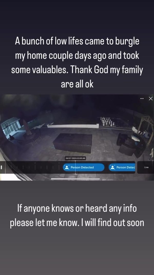 亚伯拉罕社媒晒监控:窃贼闯进我家偷走可贵物品,幸亏家东谈主没事